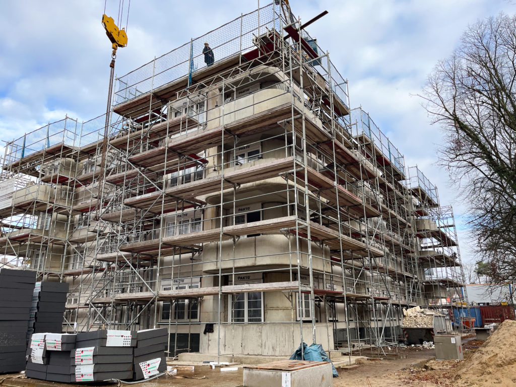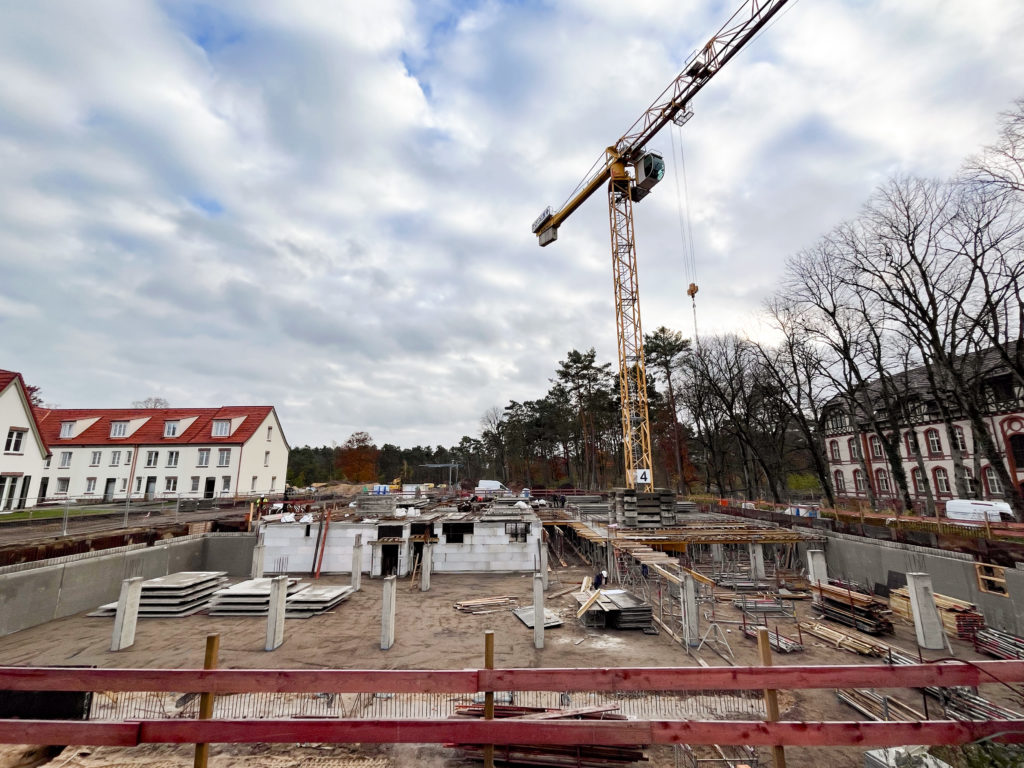 Nun wurden auch die ersten Fassadengerüste entfernt und die aufwändige Architektur im Stil der historischen Gebäude im Quartier Beelitz-Heilstätten kann bewundert werden.