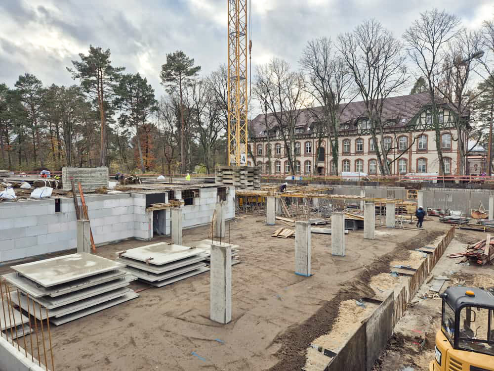Nach nur wenigen Monaten ist der Rohbau für die private Grundschule mit Hort und Schwimmhalle nahezu fertiggestellt. Für den Herbst 2025 ist die Eröffnung geplant. Gut 600 Kinder können dann hier die Schule im Ortszentrum des Projekts „QUARTIER BEELITZ-HEILSTÄTTEN“ besuchen und auch Schwimmen lernen.